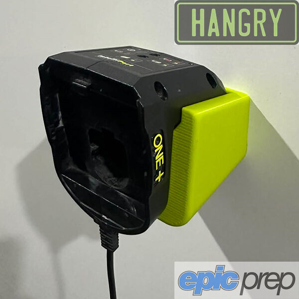 Hangry Products introduce the Battery Charger Wall Mounted Holder for Ryobi ONE+ Battery Chargers. After years or frustratingly time consuming battery swaps on chargers that sit on the battery on a bench, we have come up with the simple and time saving wall mount for your charger. It is now as simple as take the charged battery out & click the flat battery in. This Wall Mount also means you have a clean work space. Available in Black and Ryobi Grean to match or contrast your charger.